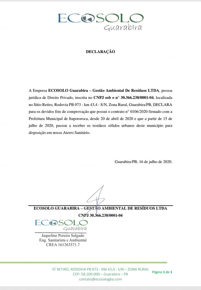 “Itapororoca sai na frente ao iniciar a desativação do lixão, estamos trabalhando em prol da sociedade, buscando sempre a resolução das demandas, depois de quase uma década e meia de atividades a desativação do lixão é uma realidade", enfatiza o Secretário.