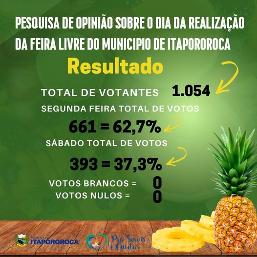 Resultado da Pesuisa de Opinião "Quantitativa" em relação ao dia de realização da Feira Livre, realizada nos dias 26/03 e 02/04, com comerciantes e consumidores da Feira Livre do Município de Itapororoca-PB.