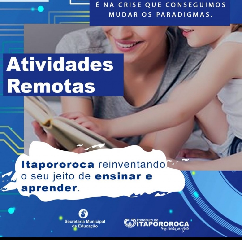 Devido a Pandemia do Coronavírus, a Prefeitura Municipal de Itapororoca, através da Secretaria de Educação estará dando continuidade nesse dia 15/06 a entrega dos materais para “aulas remotas”, onde os alunos estarão recebendo a cada duas semanas o conteúdo para a realização de estudos em casa.
