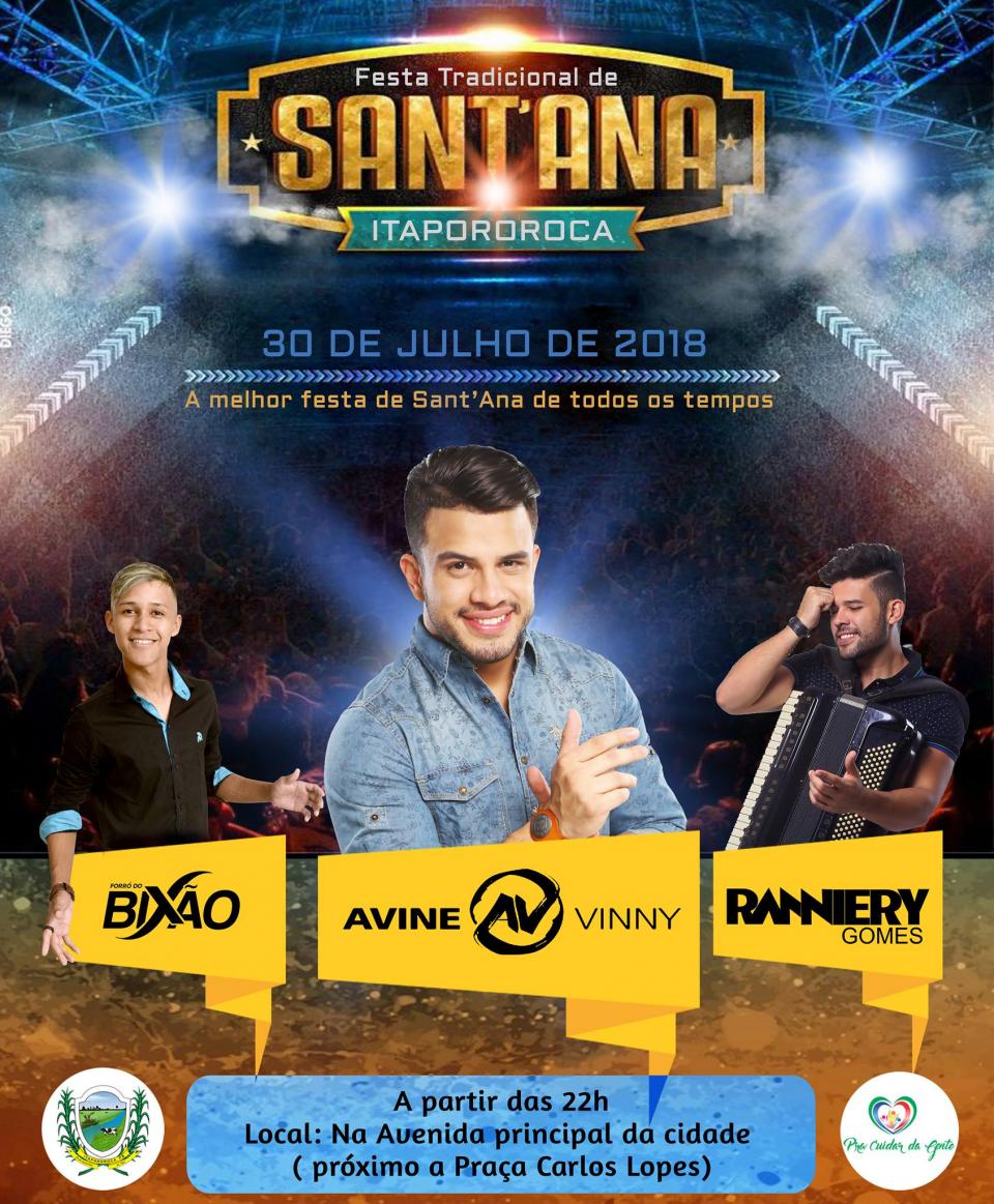 A Prefeita Constitucional Elissandra Brito e Seu Vice Dr° Walisson Dionísio, convidam a todos munícipes e a sociedade paraibana, para juntos participarmos da maior e melhor festa de Sant’Ana de todos os tempos.